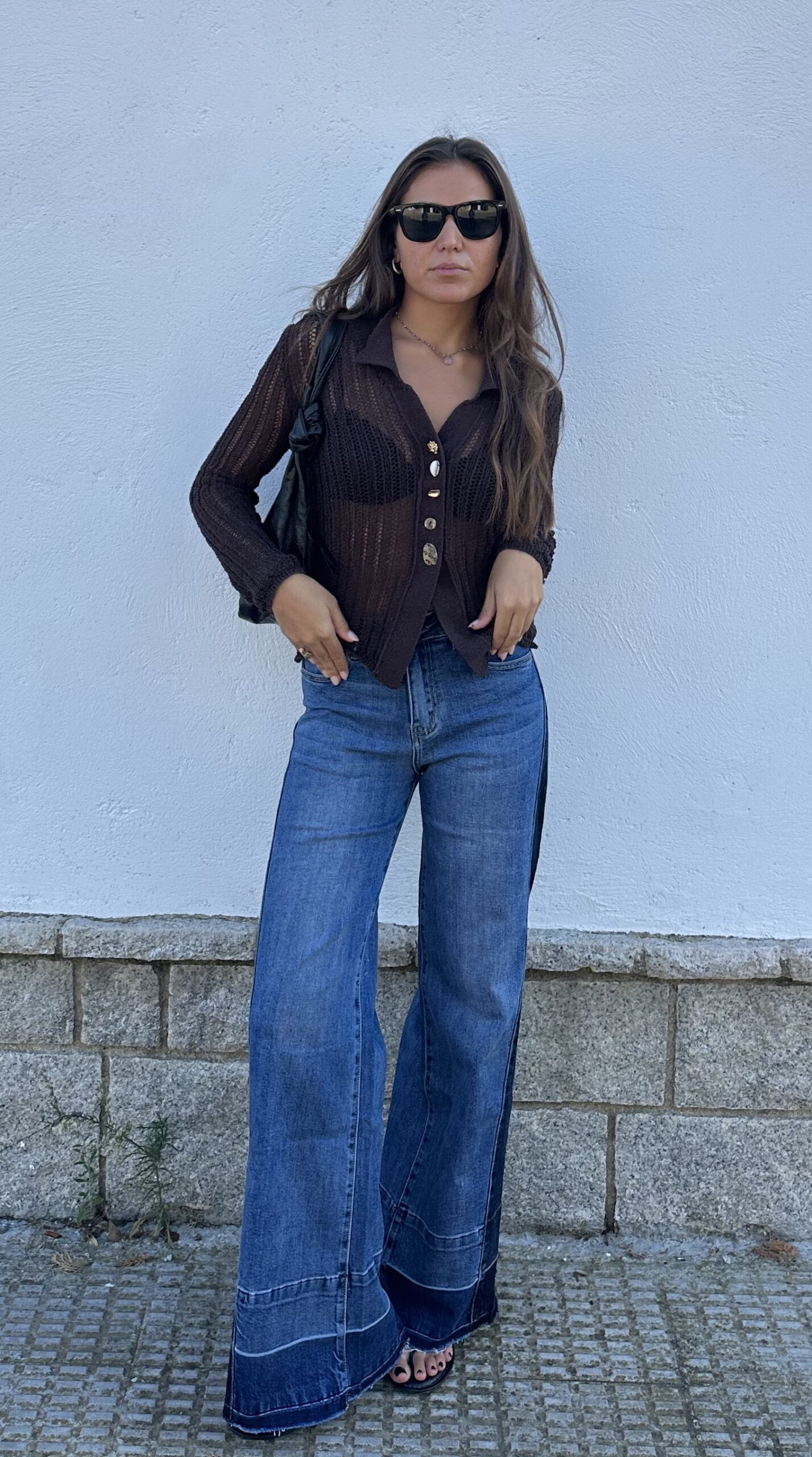 Un vaquero versátil y con carácter, perfecto para combinar con camisas estructuradas o tops ligeros en looks de día o de noche.